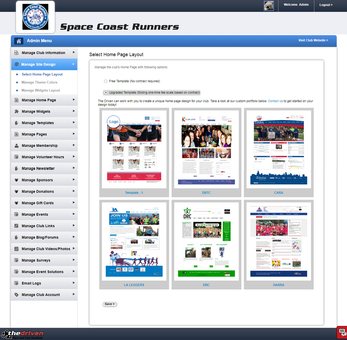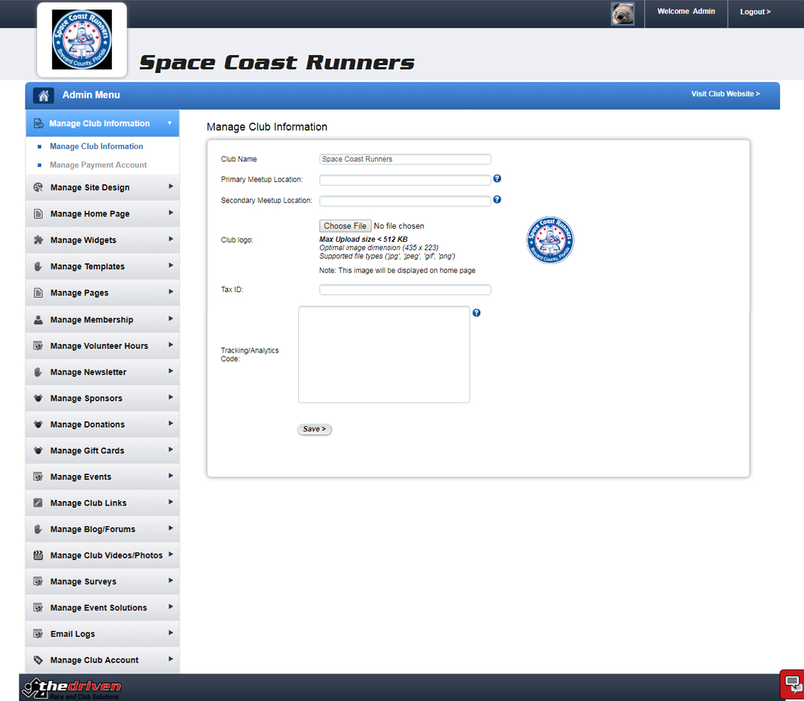 The Driven knows how important branding is to your club, so we give you the capability to customize the look of your club site by first selecting a layout, then adding your header/banner image--which you can display with or without your logo, and managing your theme colors and optional background photo.