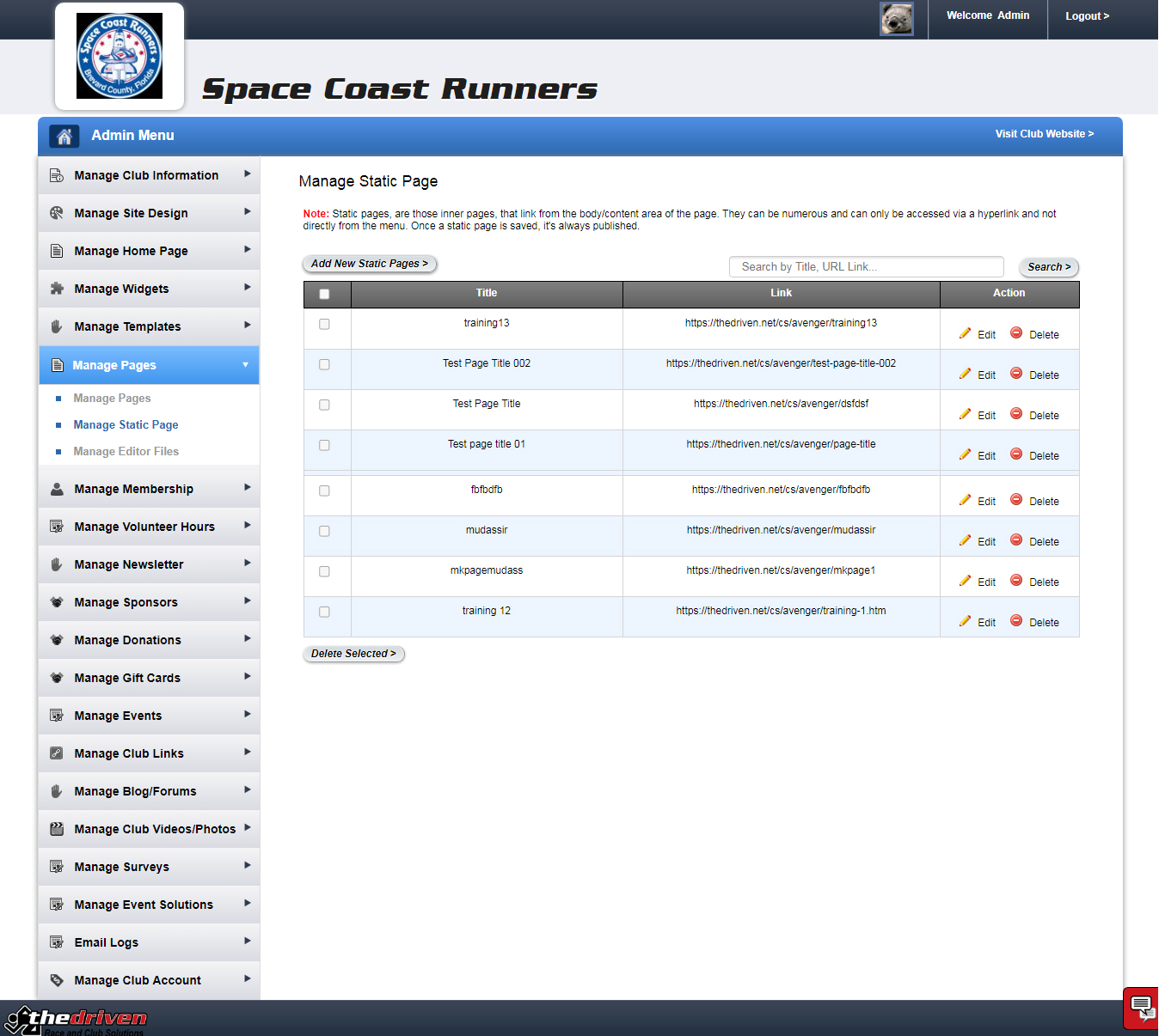 Decide which pages your club site will feature and in which order. There are typical preset pages for both club memebers and the club community, but The Driven gives you the freedom to remove these pages and add new pages you might want for your club. For each page, you have the ultimate control to manage menu levels, page title, metatags, and widgets, as well as whether you want the page to be viewable by members only.