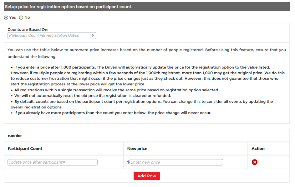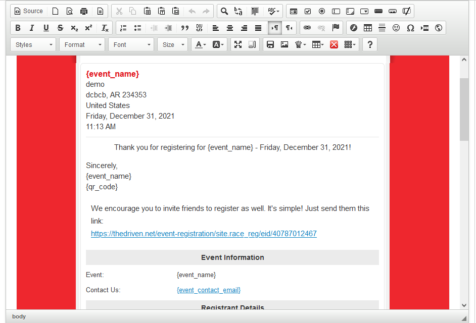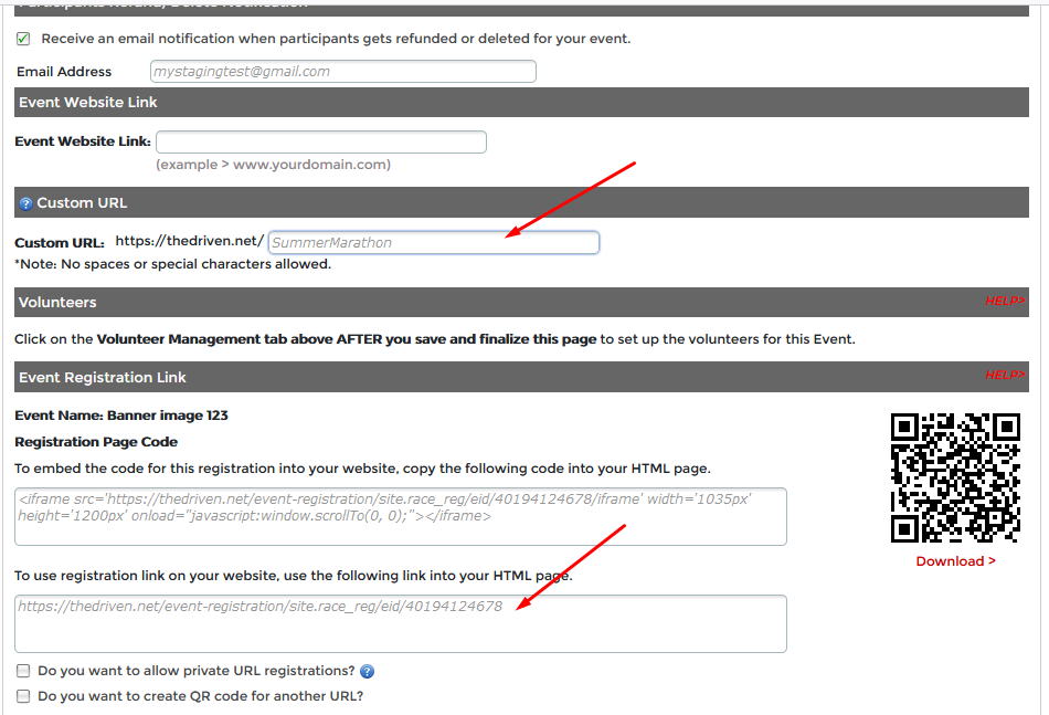 You can also create a custom registration link for your event if you don't want to display the standard registration link. Example of a custom registration link - "thedriven.net/SummerMarathon".