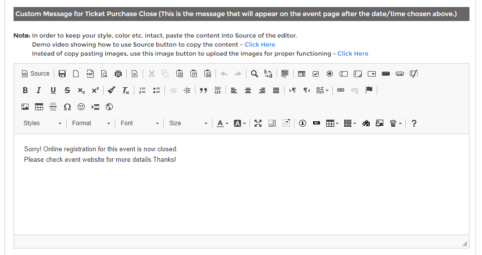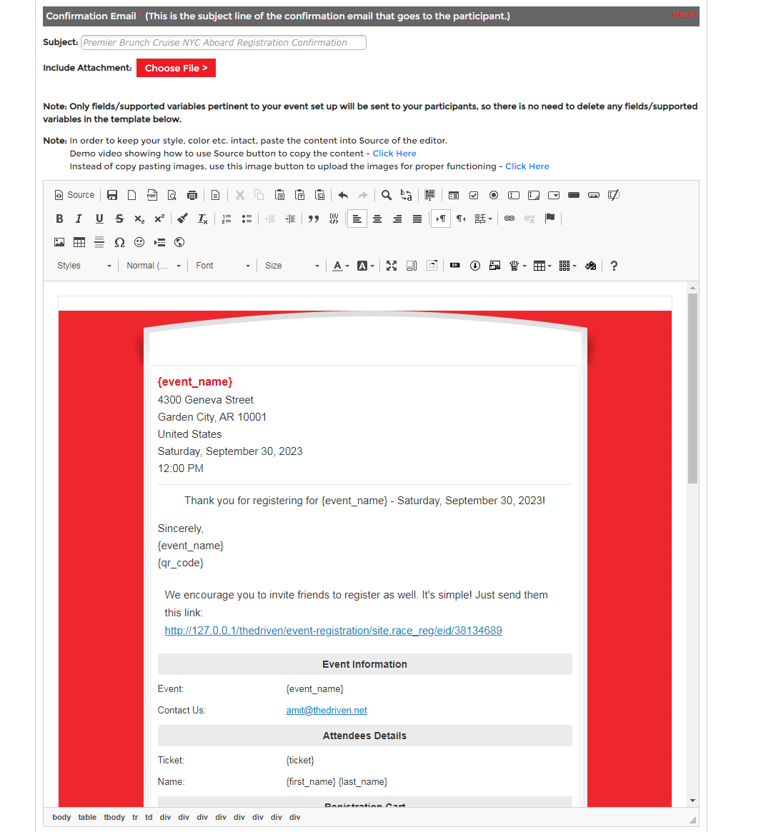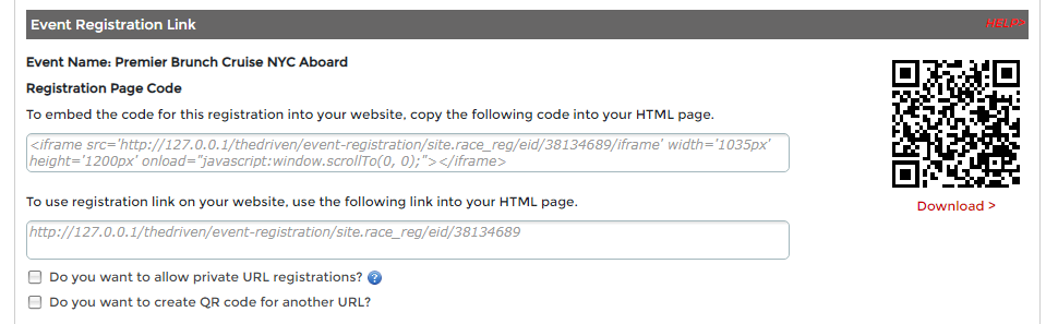 Here is where you will acquire the event registration link needed for anyone to signup for your event.
